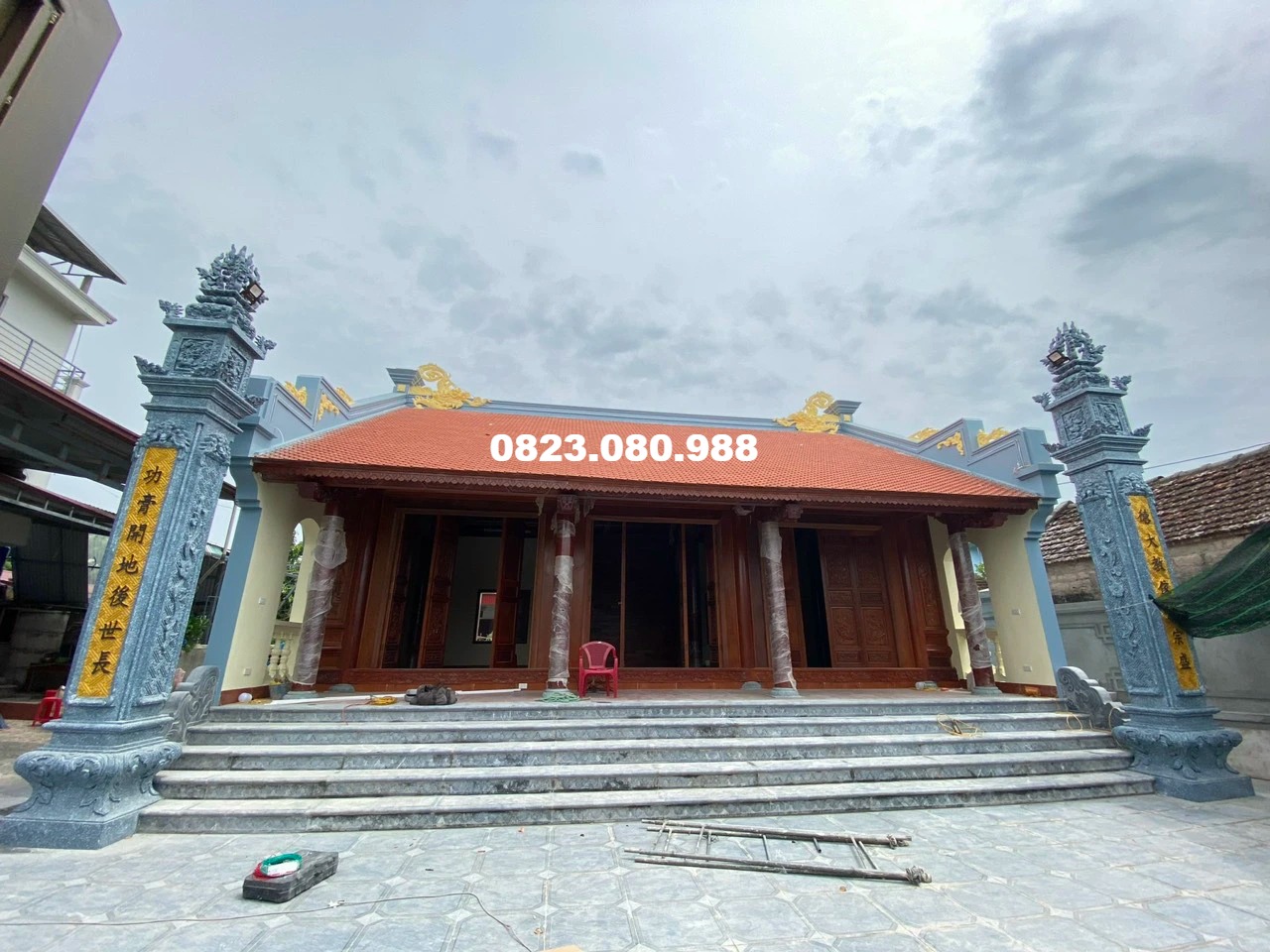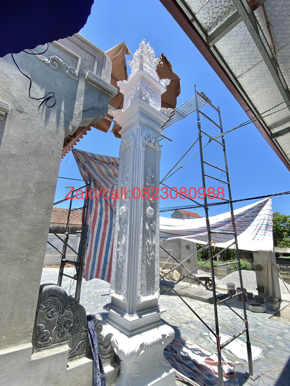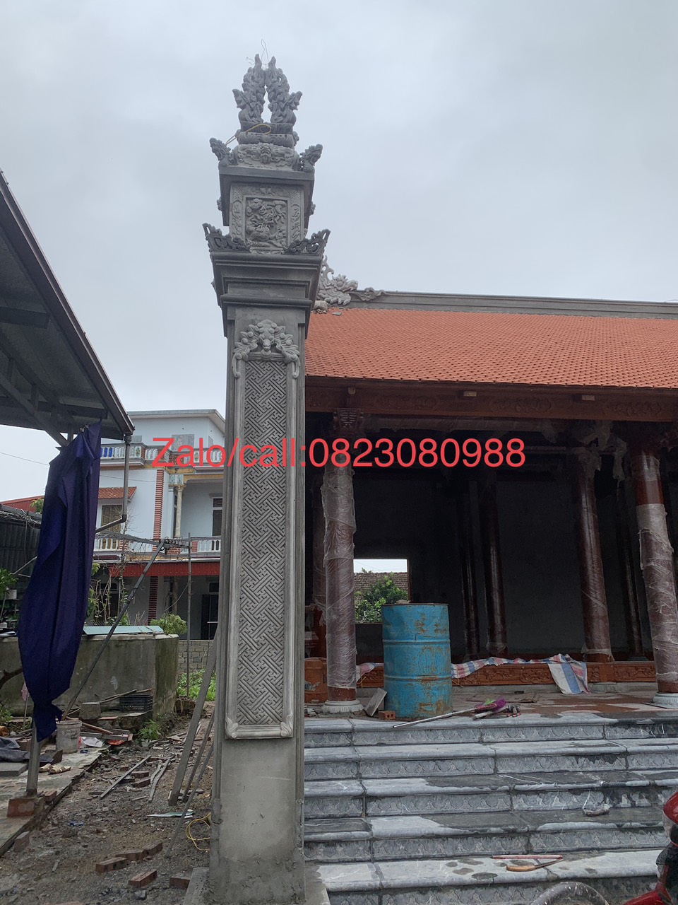 THI CÔNG HOA VĂN RÔNG PHƯỢNG TRANG TRÍ NHÀ THỜ HỌ, CỘT ĐỒNG TRỤ BÊ TÔNG, CỘT ĐÈN NHÀ THỜ