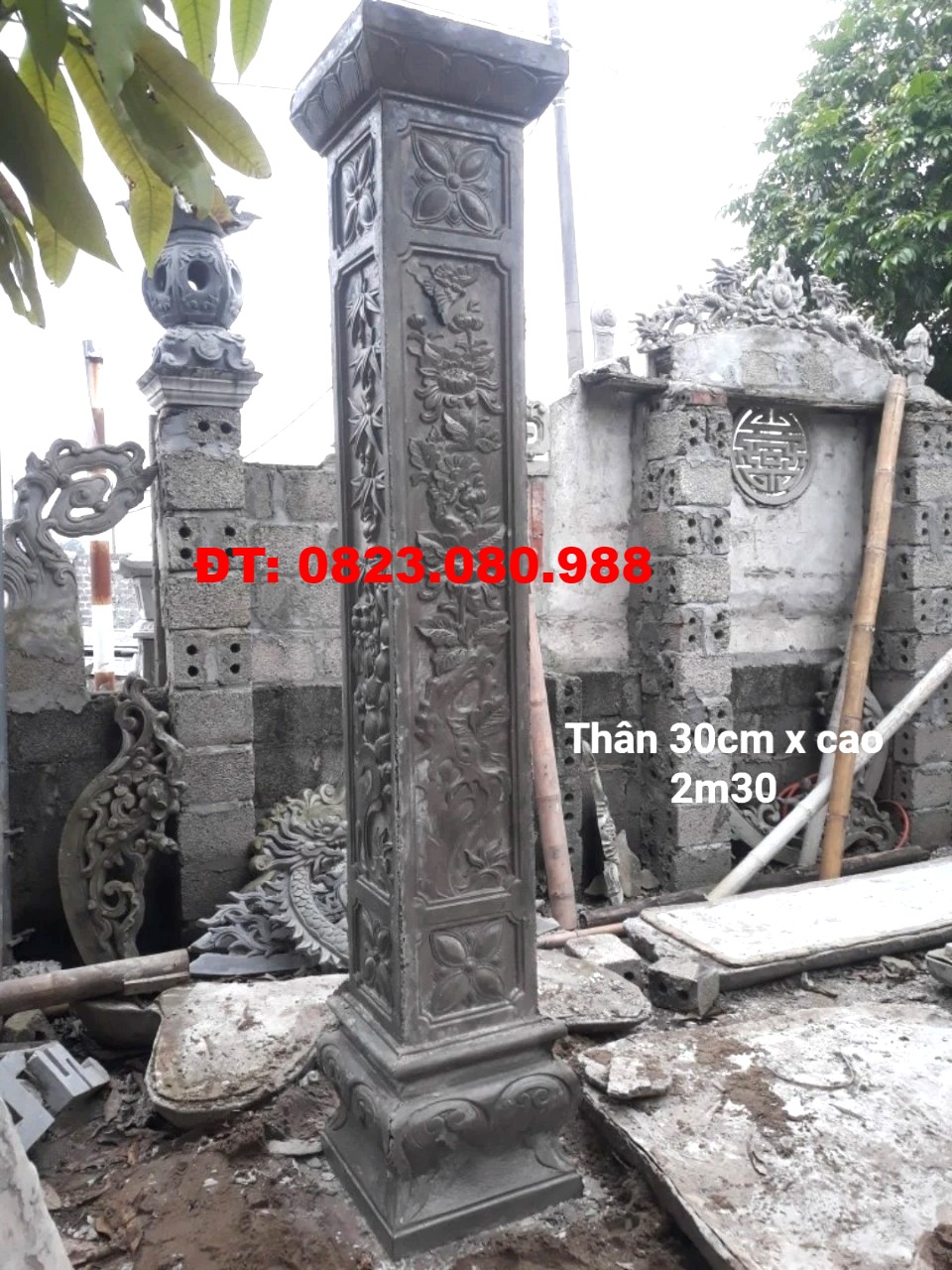Cột có 2 cỡ thân 30x30 cm cao 2,3 mét và cỡ thân 25x25cm cao 2,45m