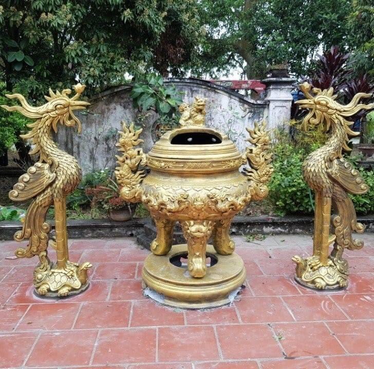 Đặt mua bộ đỉnh hạc xi măng, bộ đỉnh hóa vàng
