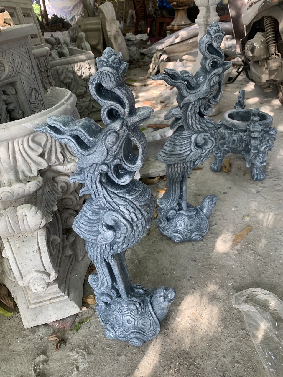 Bộ đỉnh hạc bằng xi măng sơn giả đá