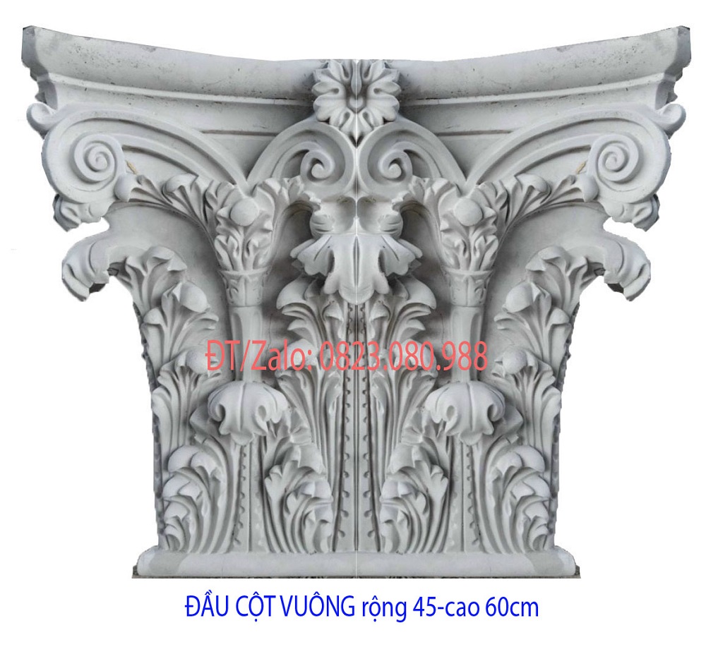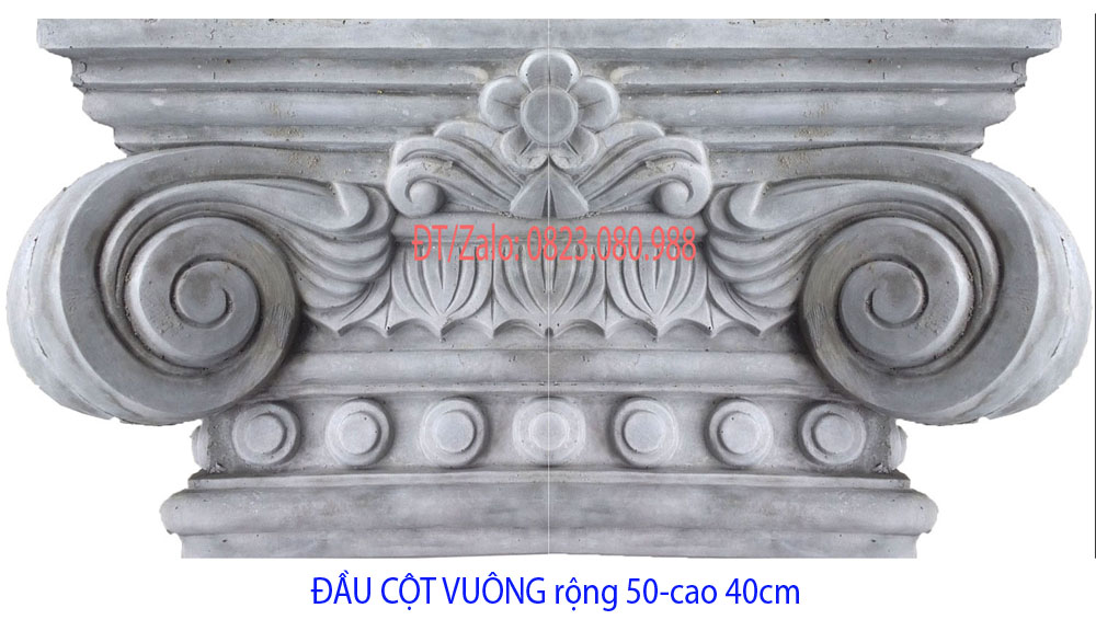 Mẫu đầu cột vuông bê tông đúc sẵn lòng rộng 50cm lá tây
