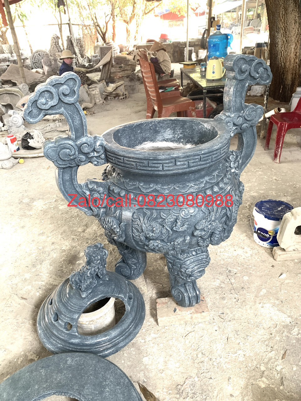 Đỉnh Hương xi măng ĐK 40/50cm - Lò hóa vàng giả đá, đốt vàng mã, Lư hương xi măng giả đá