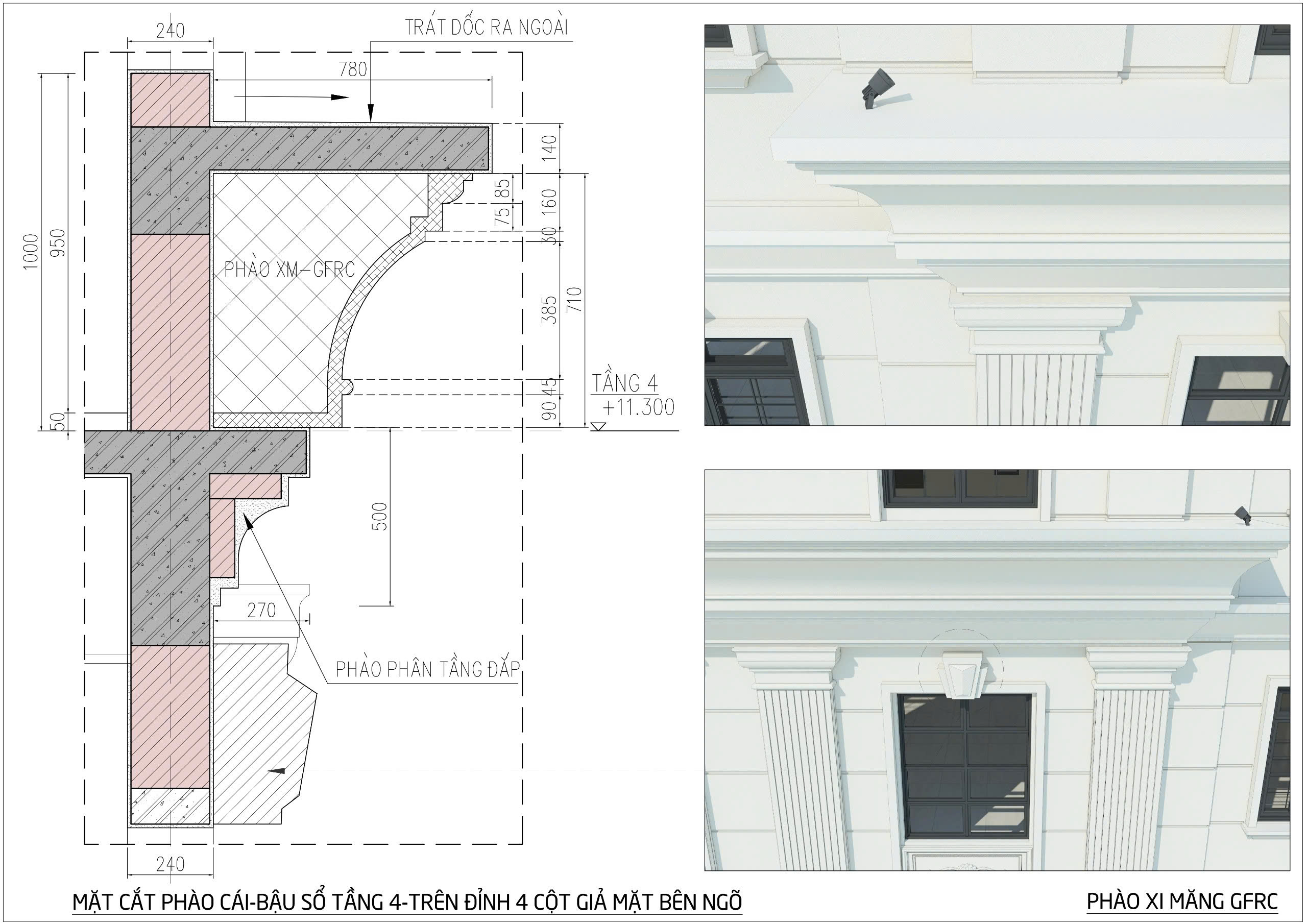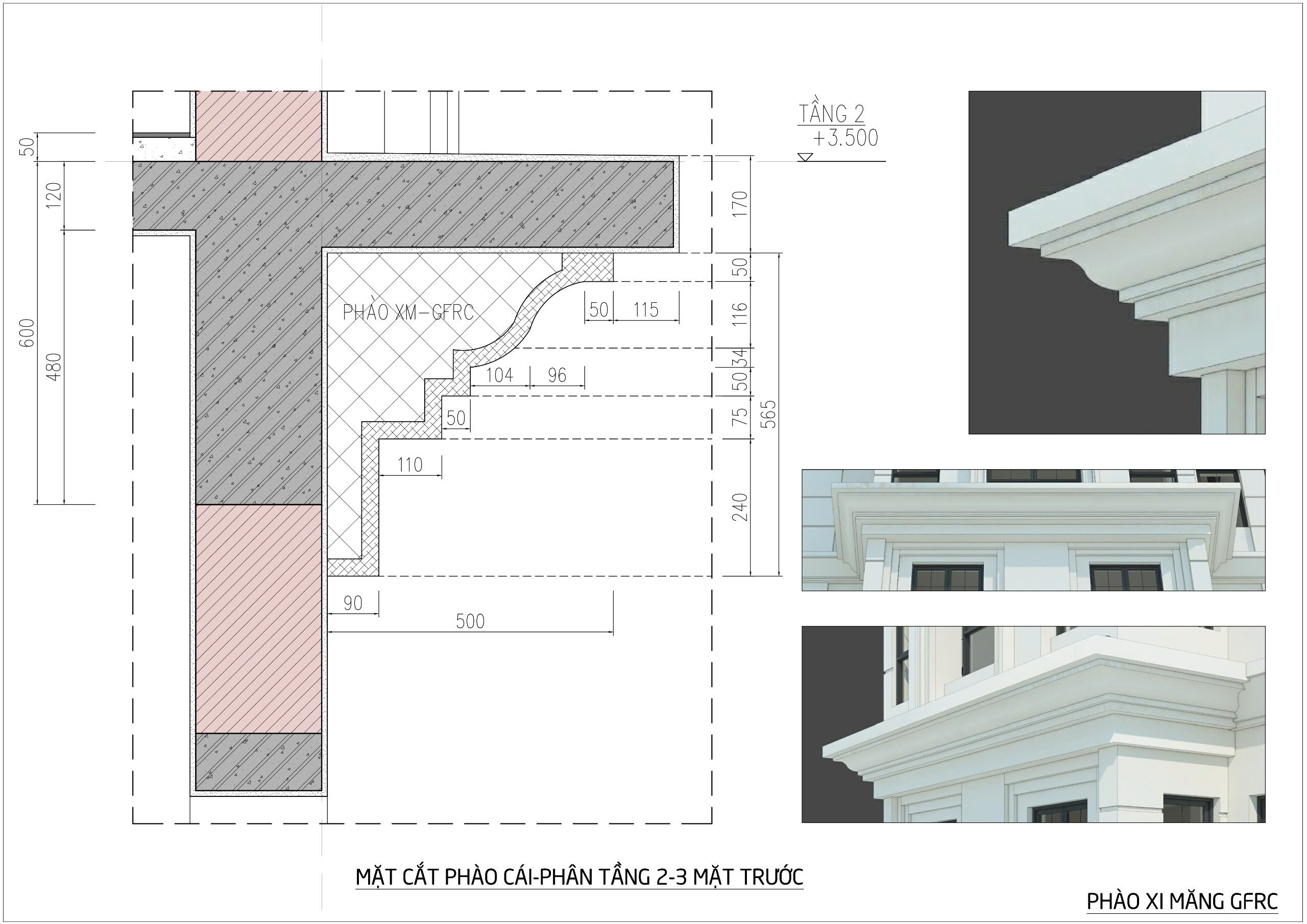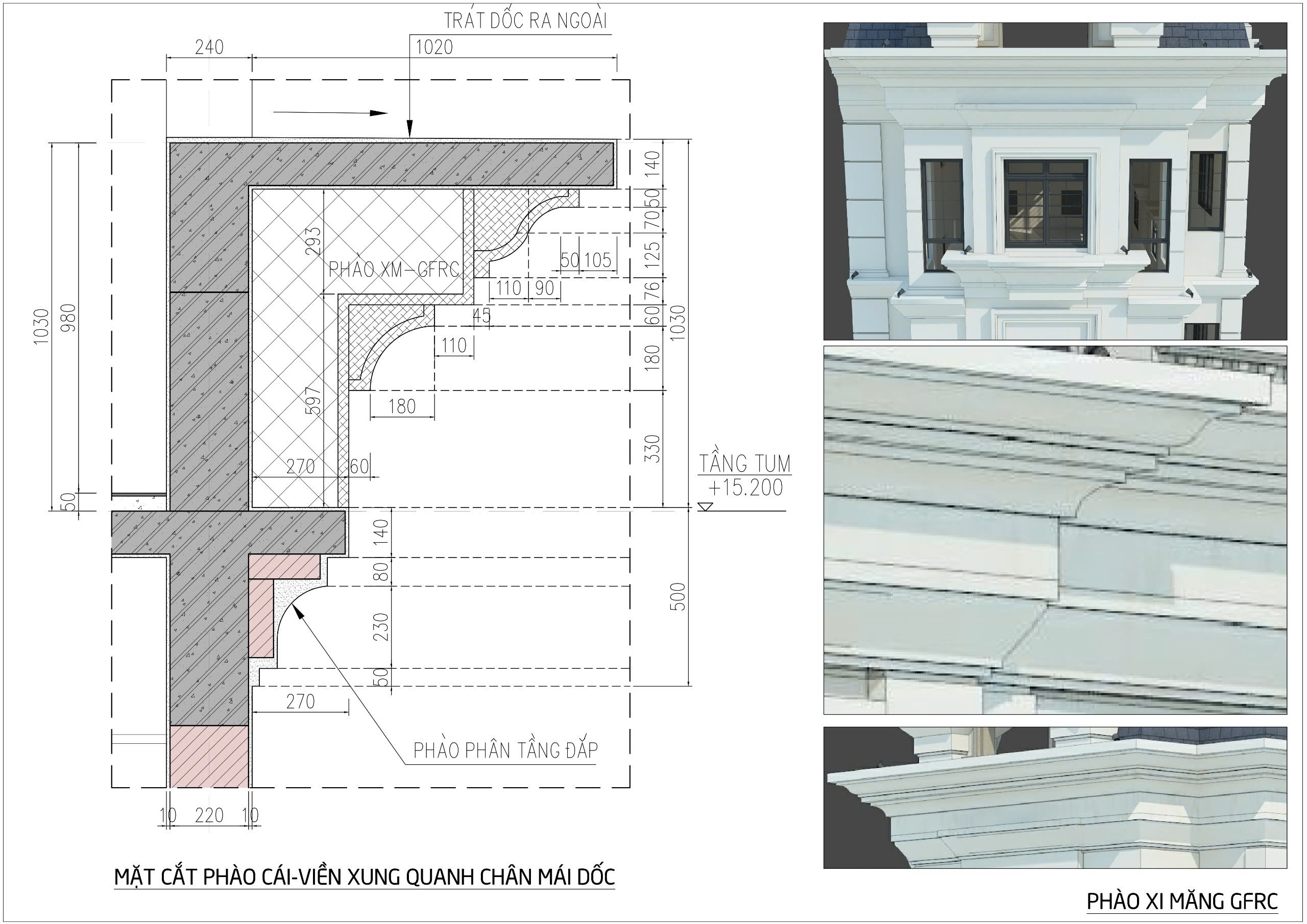 Phào chỉ GFRC sản xuất bằng phương pháp mới kéo bằng ray trượt cho độ nét và độ thẳng tuyệt đối 99%, vượt trội hơn các phương pháp đúc khuôn truyền thống thường hay bị cong vênh rỗ mặt, gây khó khăn khi thi công lắp đặt.