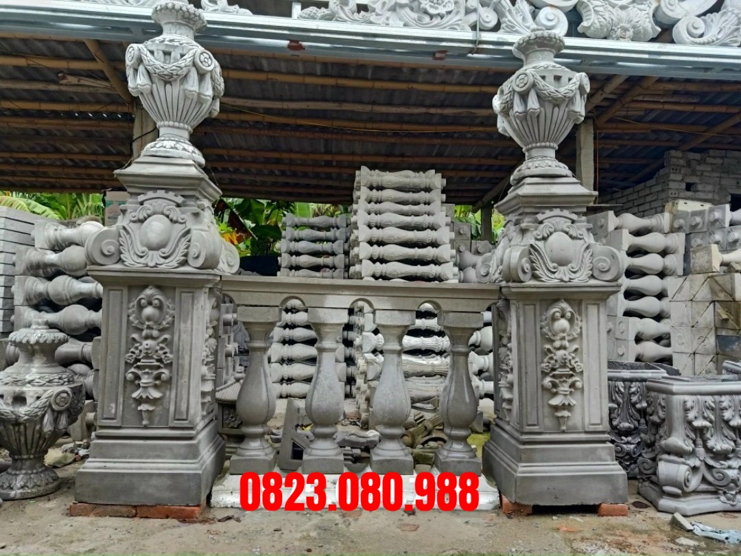 Trụ lan can bê tông đúc sẵn kết hợp với con tiện hay còn gọi là lục bình bê tông của công ty điêu khắc SAD chúng tôi sản xuất cùng nhau tạo nên một khối tổng thể chắc chắn, đẹp mắt và cực kỳ an toàn cho gia chủ. Trụ lan can bê tông với vật liệu hoàn toàn bằng xi măng cát vàng được gia cố sợi thủy tinh, sợi lưới cước.